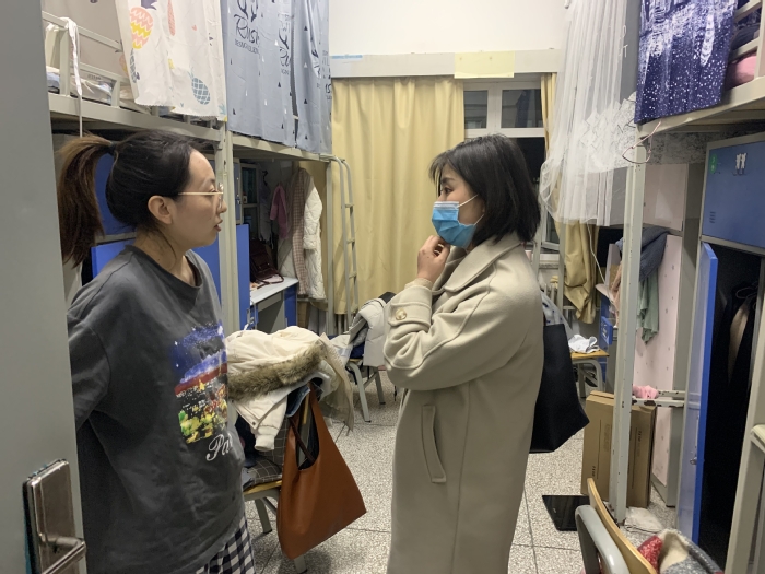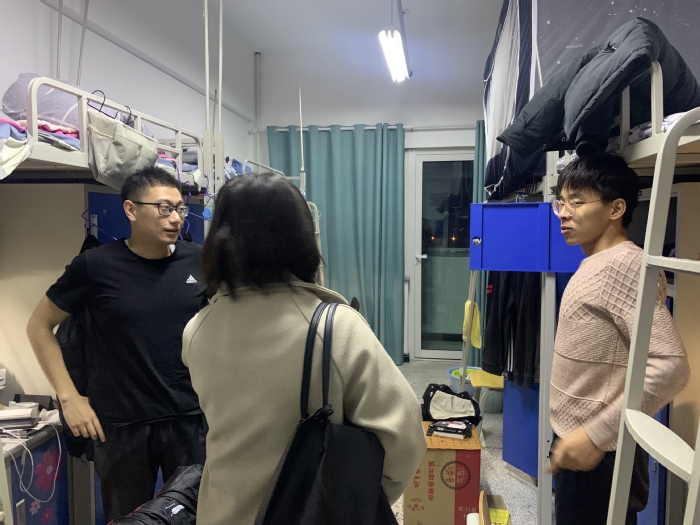 临近寒假,为深入了解学生宿舍用电安全以及期末考试备考情况,关注冬季日常生活状况,12月29日晚,在我院宋香云老师带领,各班班长以及部分学生干部陪同下,深入研究生公寓看望学生。