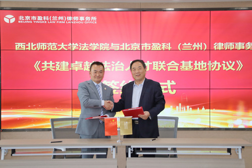 接着,西北师大学院院长杜睿哲教授和北京市盈科(兰州)律师事务所管委会主任李宇明律师共同签署《共建卓越法治人才联合基地协议》。