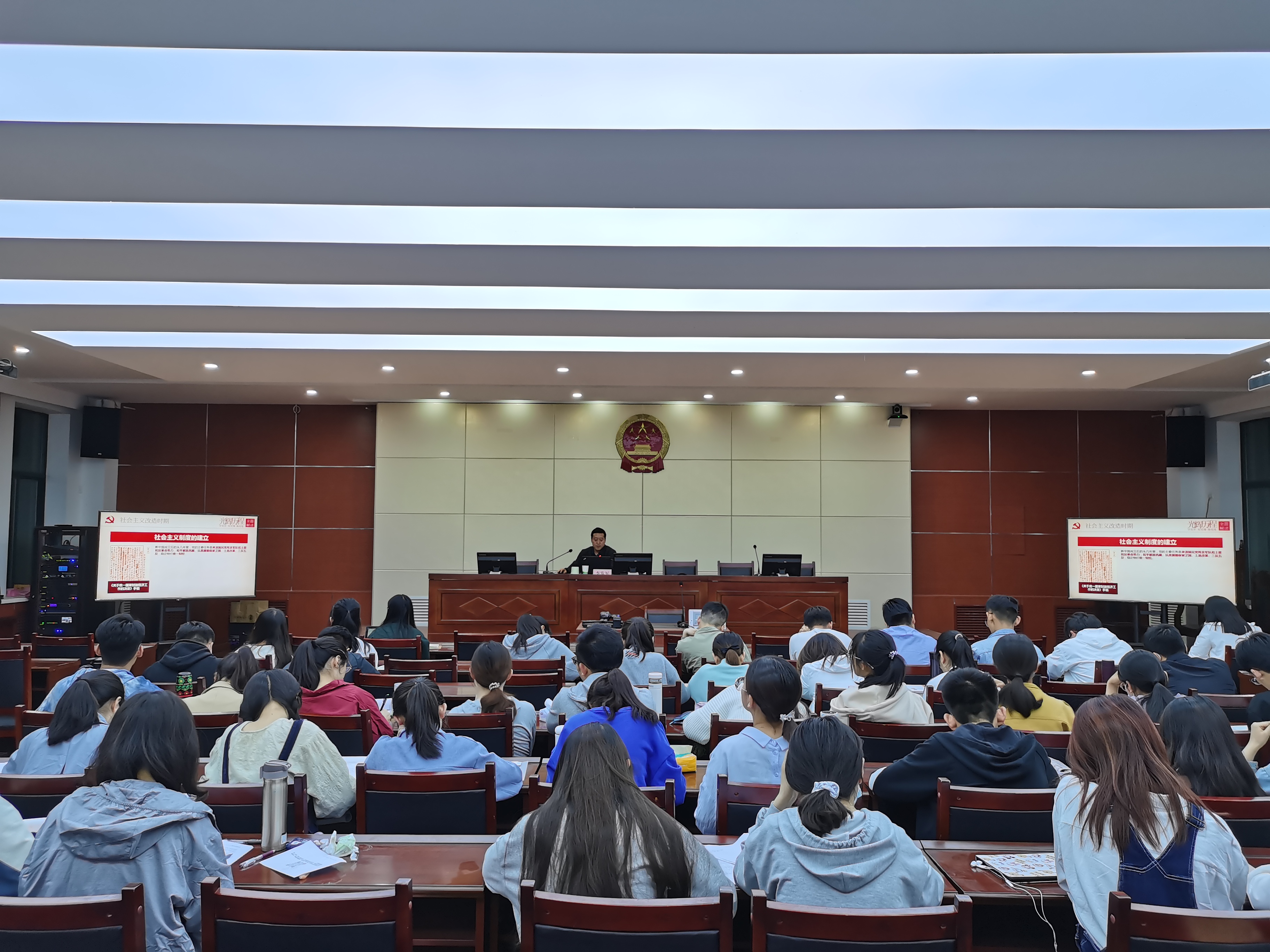 5月11日,院长杜睿哲教授作了《法科学生的家国情怀》的专题报告。他围绕为中国人民谋幸福,为中华民族谋复兴的主题,以学科知识的角度向同学们阐述了法科学生的家国情怀。杜院长的报告氛围两部分:一、幸福篇。引用习近平总书记“让人民群众在每一个司法案件中感受到公平正义”话语,提出了“裁判应当减轻救助他人的社会风险”,以此引领社会风尚。杜老师认为,要推动依法治国,就要加强法治人才建设。同学们既然想成为共产党员的一分子,就要提高政治站位、提高法治实践能力,顾全大局,将自己的法治发展与法治国家相结合。二、复兴篇。未来的中国一定是一个法治国家。杜老师结合国情战略,勉励同学们要有社会担当意识,责任意识,情感意识,为社会提供公平正义的产品,要立场坚定,责任明确,将国家战略与社会未来相结合。最后,杜老师寄希望于同学们要立足于当下,望眼于未来,努力成为未来社会的领军人才!