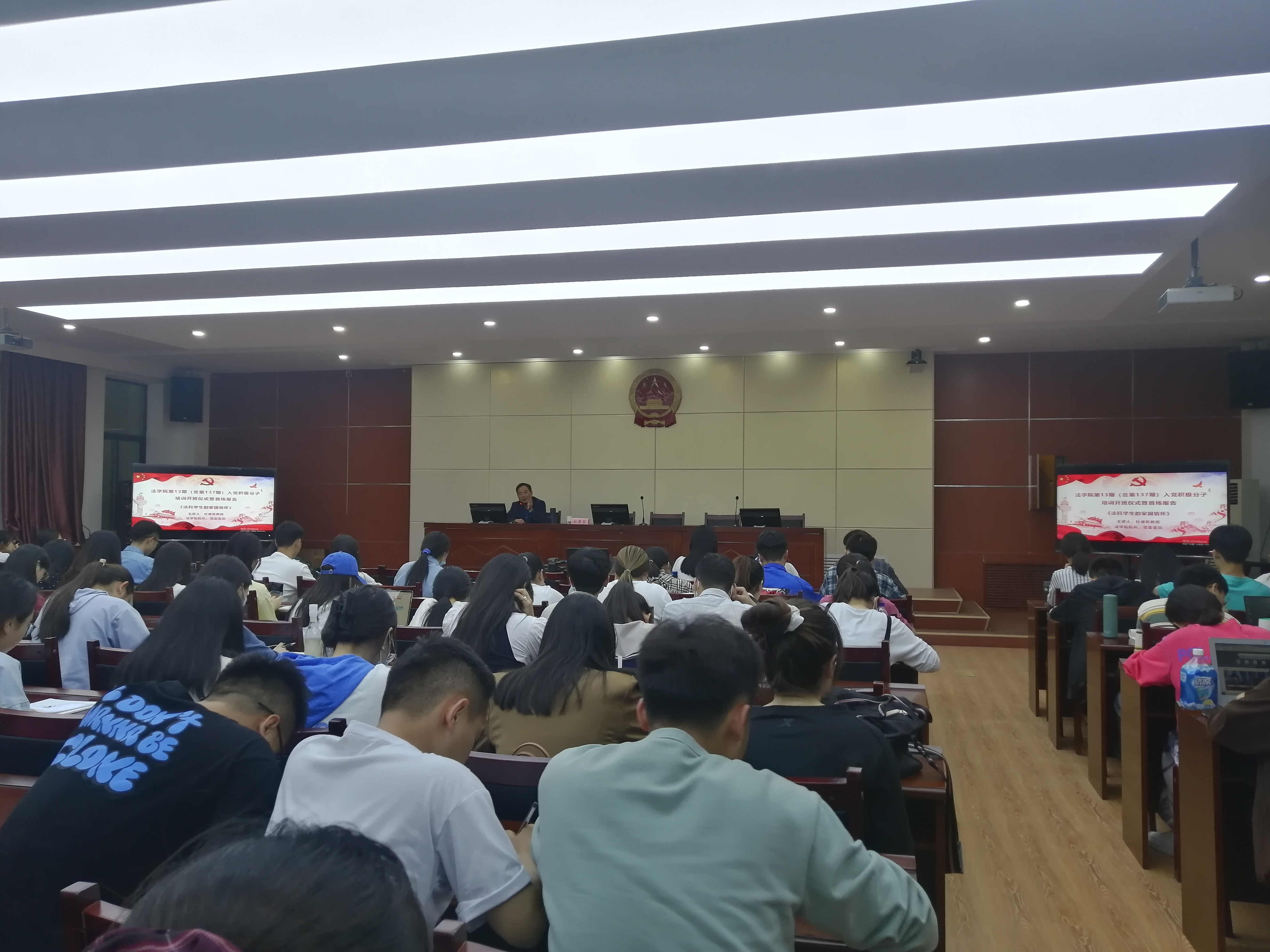 5月10日,学院第13期入党积极分子培训班在模拟法庭开班。党委书记李发军同志作题为«如何做一个真正的马克思主义青年»的首场报告。96名入党积极分子参加培训。