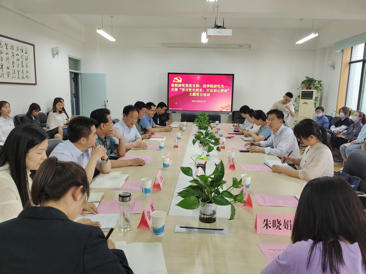 追忆历史,携手共建,展望未来。为深入贯彻落实习近平总书记在党史学习教育动员大会上的重要讲话精神,全面推动党史学习教育开展,创新并丰富教育形式,6月4日,省检察院政策研究室党支部金石主任带领青年党员来到西北师范大学,与学院研究生第一党支部共同开展“学习党史校史、不忘初心使命”主题党日活动。学院党委书记李发军同志、院长杜睿哲同志、副院长齐建辉同志、党崇武同志、党委副书记王金元同志、副院长车亮亮、研究生一支部书记涂钒同志以及研究生一支部党员和积极分子共同参加了本次活动。