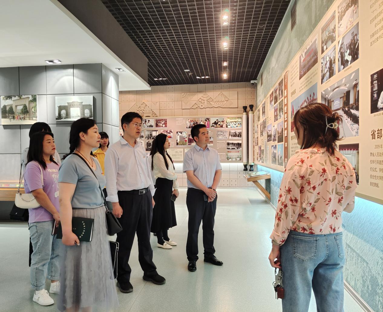 牢记初心,感悟时代积淀。历史是记忆的生命,每一个昨天都成为今天的历史。活动之初,在王书记和涂书记的共同陪同下,省检察院政策研究室的党员同志们走进校史馆和博物馆,聆听着生动有趣的讲解,享受着书香四溢的视觉盛宴。一张张照片,一件件实物,见证着学校百年辉煌的历史,展望着学子蓬勃发展的美好未来。正是因为有着浓厚的历史积淀,我们才能立足于党的百年历史的新起点,紧随发展形势,把握时代脉络。