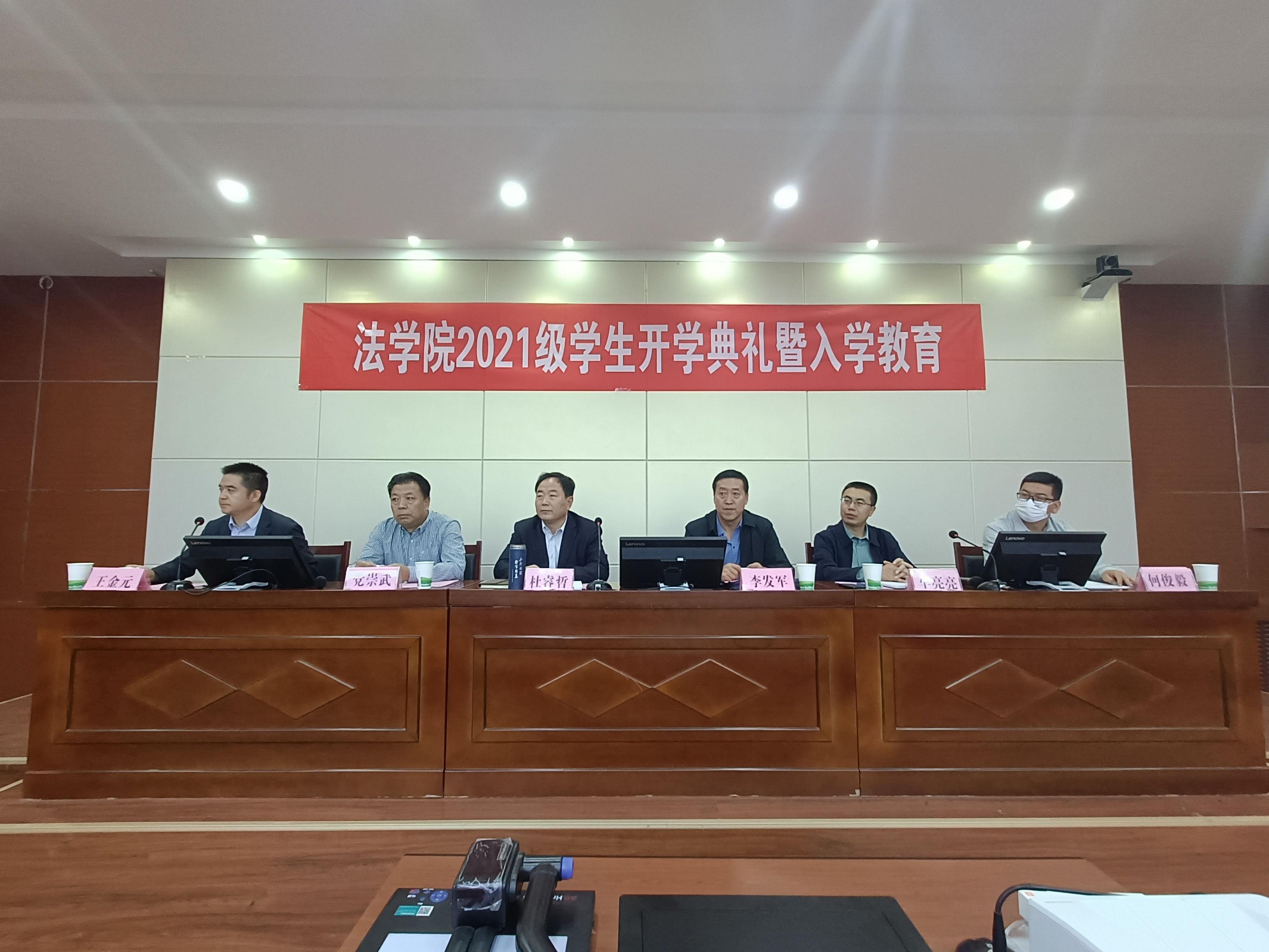 乘风远航启新程,春华秋实绘佳卷。9月15日上午9时,学院2021级新生开学典礼暨入学教育大会在模拟法庭举行。学院党委书记李发军、院长杜睿哲、党委副书记王金元、副院长党崇武、副院长车亮亮及系主任、班主任、辅导员和全体新生参加了会议。会议由党委副书记王金元主持。