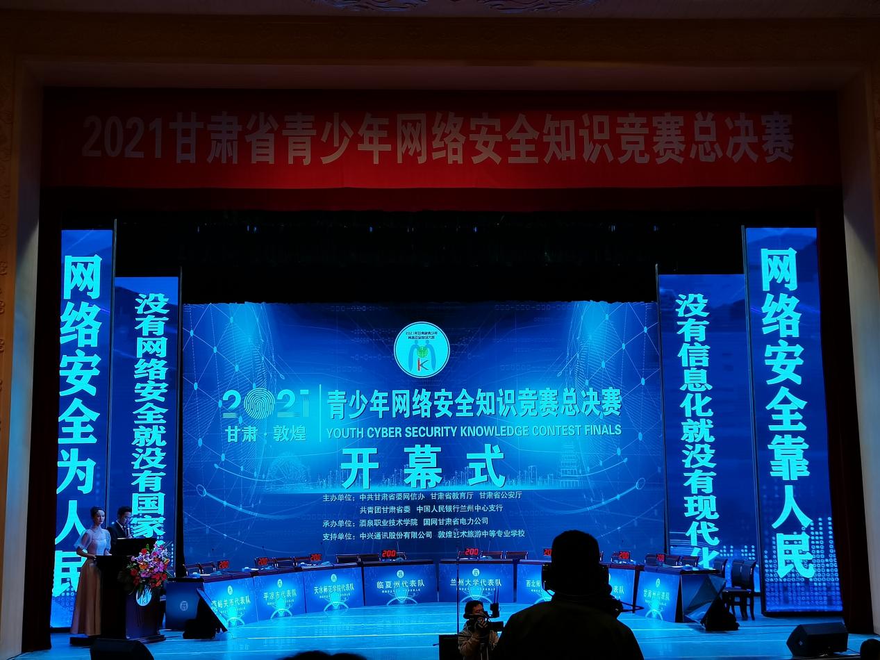 为深入学习贯彻习近平总书记关于网络强国的重要思想,激发广大青少年学习网络安全知识的积极性,提升网络安全意识和基本防护技能,提升广大人民群众在网络空间的获得感、幸福感和安全感。10月8日—9日,省委网信办、省教育厅、省公安厅、团省委等单位在敦煌市联合举办了2021年甘肃省青少年网络安全知识竞赛总决赛。