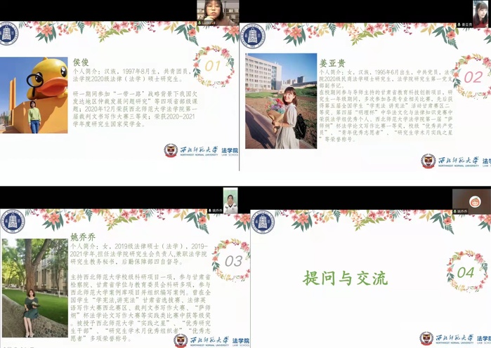 为了树立学习模范、发挥榜样作用,解答我院同学关于研究生的学习规划和有关国家奖学金等疑问,学院于2021年11月12日19时邀请了三位国家奖学金获得者,以线上会议的形式,分享学习生活经验。