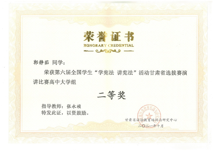 近日,由甘肃省教育厅主办,甘肃省法制教育培训与研究中心承办的第六届全国学生“学宪法 讲宪法”甘肃省选拔赛在甘肃政法大学进行。