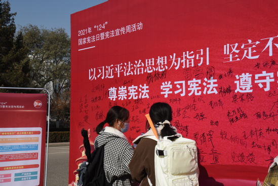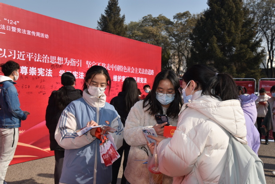 11月29日-12月4日,学院利用校内电子屏开展法治微视频展播,以微视频的形式宣传宪法、民法典、防范电信诈骗等相关法律知识。学院学生党支部、团支部组织全体学生开展了“宪法与我”主题党日、团日主题活动。12月4日,在西苑餐厅、中心广场、新校区广场开展了“弘扬宪法精神 建设法治校园”普法宣传活动,通过搭建“法律小屋”、张贴宣传海报、发放宣传资料、开展法律知识有奖竞猜活动、集体签名等形式,向师生讲解宪法、宣传宪法。