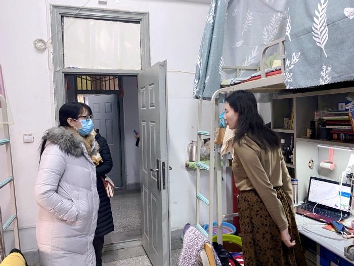 走访过程中,张老师与同学们进行了亲切交流,详细了解学生的学习情况,询问了同学们生活方面的问题并进行现场解答。同时也叮嘱同学们要严格遵守疫情防控期间校园管理要求,提高防范意识,做好科学防护,保持寝室定时通风,营造舒适的学习生活环境。周老师对学生寝室可能存在的安全隐患进行了排查,再次强调冬季禁止使用违章电器,务必做好寝室消防安全。