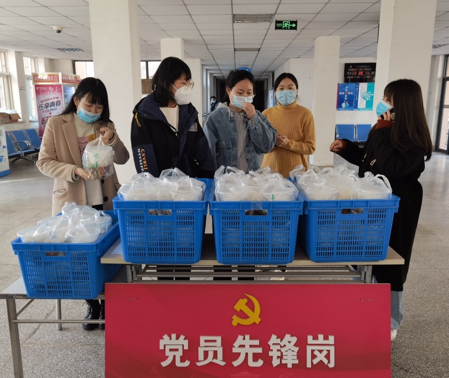 学期伊始,春意料峭,新冠肺炎疫情又一次席卷而来,疫情防控的号角再次吹响。在学校疫情防控管理的要求下,全校师生的脚步暂时被封闭于各自的生活圈。部分公寓的同学因封闭管控的原因,出现就餐困难的问题,为此,学校安排由食堂统一配备餐食,为了保障更加准确及时安全,学院研究生会快速行动,召集志愿者参加志愿活动,为隔离在宿舍的同学送餐。时有所需,必有所为。本着“同心战疫,共克时艰”的理念,志愿者们主动请缨,积极报名参加。每到饭点,都有志愿者为学生送去“爱心餐”,一日三餐,荤素搭配,营养均衡,暖心又暖胃。
