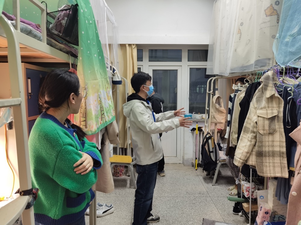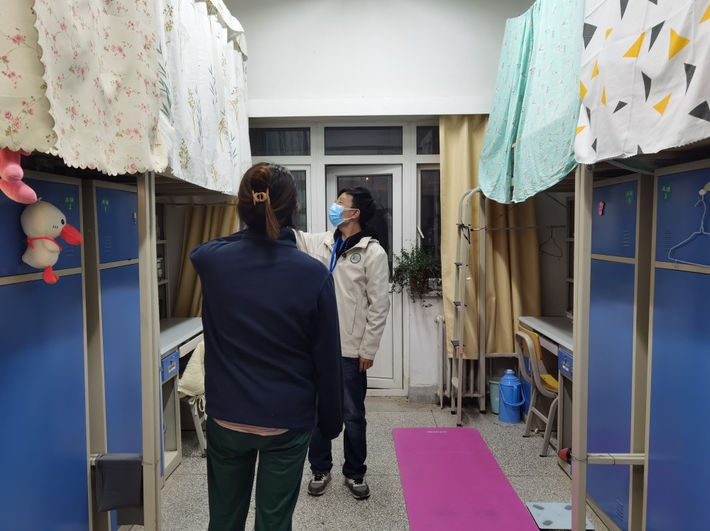 学宿舍是学生重要的生活场所,尤其疫情期间,宿舍管控极为关键。辅导员张老师走访看望新校区的研究生,了解疫情期间学生的心理健康状况和宿舍卫生安全状况。叮嘱同学们要严格遵守疫情防控期间的校园管理要求,提高思想认识和防控意识,做好科学防护,时刻注意身体健康状况,有异常情况第一时间联系老师。此外,辅导员还鼓励同学们在疫情期间要多多锻炼,保持良好的心态。