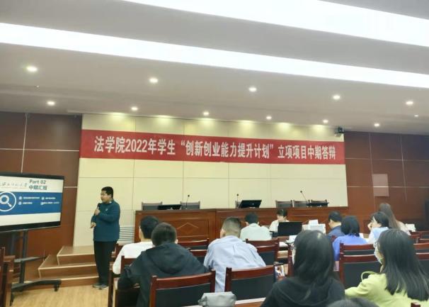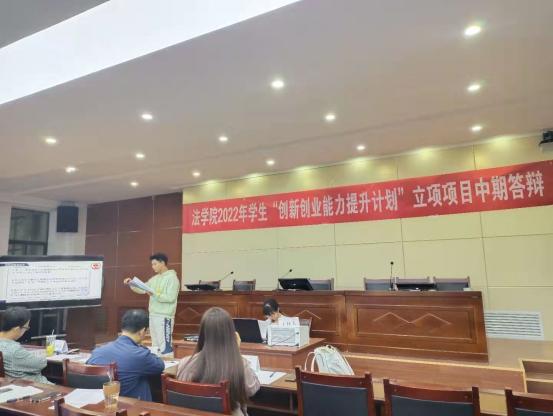 创新无止境,创业践于行。“创新创业能力提升计划”旨在培养学生专业、严谨、求实的科研态度,激发学生创造力、提升科研创新力、凝聚学生向心力。在全院学生的积极参与下,此次中期答辩于2022年5月18晚7时在模拟法庭举行,共有16支项目团队参与,学院田庆锋、张国文、吴迪三位老师担任评委。
