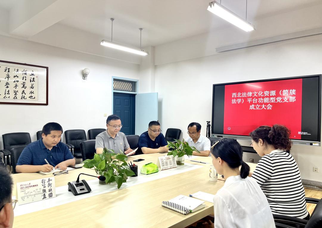 经学院党委批准,西北法律文化资源整理与应用研究中心(简牍法学研究所)平台成立功能型党支部,并于2022年6月22日晚在学院307会议召开成立大会。