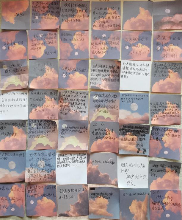 为帮助同学们解决在学习和生活当中遇到的一些困难,工作人员将事先发下的匿名问题小卡片收回,现场主持人崔仪韵挑选部分问题,由学院的“知心姐姐”张靖苑和商学院的“知心哥哥”马弈舸为在座同学解答疑问并进行心理疏导,引导学生们以良好的状态拥抱新的生活。