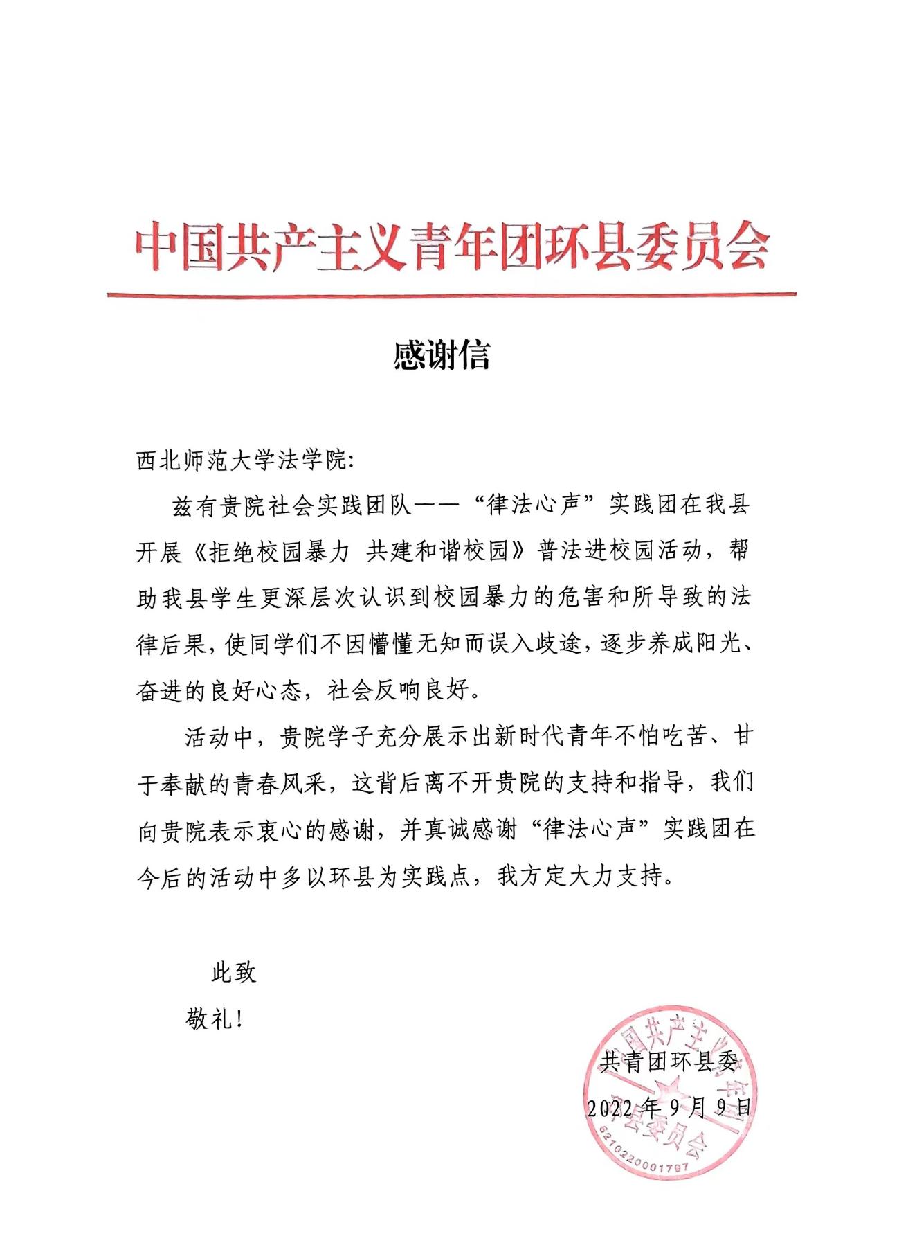 9月8日晚,必赢线路检测3003no1“律法心声”实践团走进甘肃省庆阳市环县第五中学,为同学们带来了一堂别开生面的以“预防校园暴力”为主题的公开课.通过主题讲座,知识竞赛,远方来信和现场提问等多项活动,帮助青少年树立社会主义法治理念和提高法治素养,扣好人生第一粒“法治纽扣"。