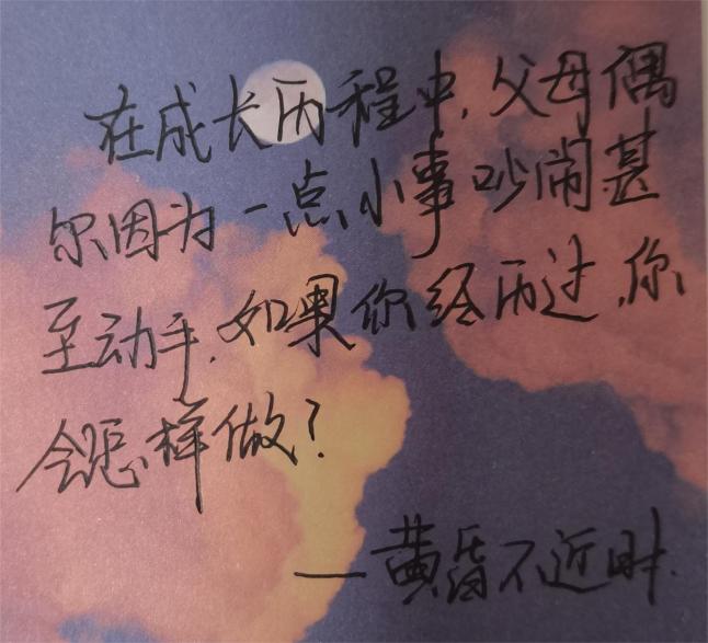 学生:在成长过程中,父母偶尔会因为一些小事吵闹,甚至动手,如果你经历过这些事情,你会怎么做?