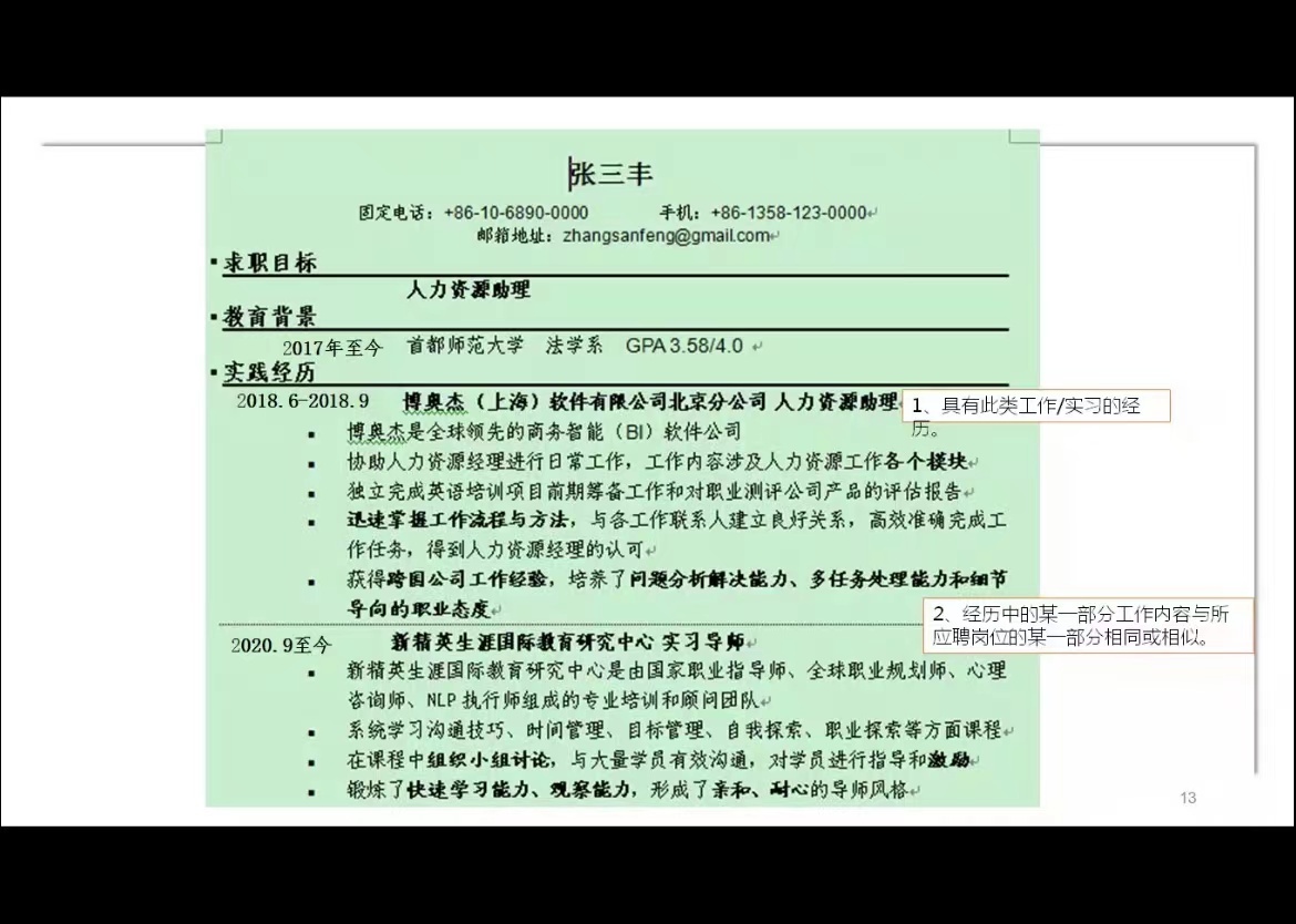雷老师讲到,制作简历是求职面试的第一步,一份好的简历是就职的敲门砖。雷老师详细讲解了简历的结构和内容,并对优秀简历模板进行了分享展示,避免同学们因制作简历失误而错失就业良机。
