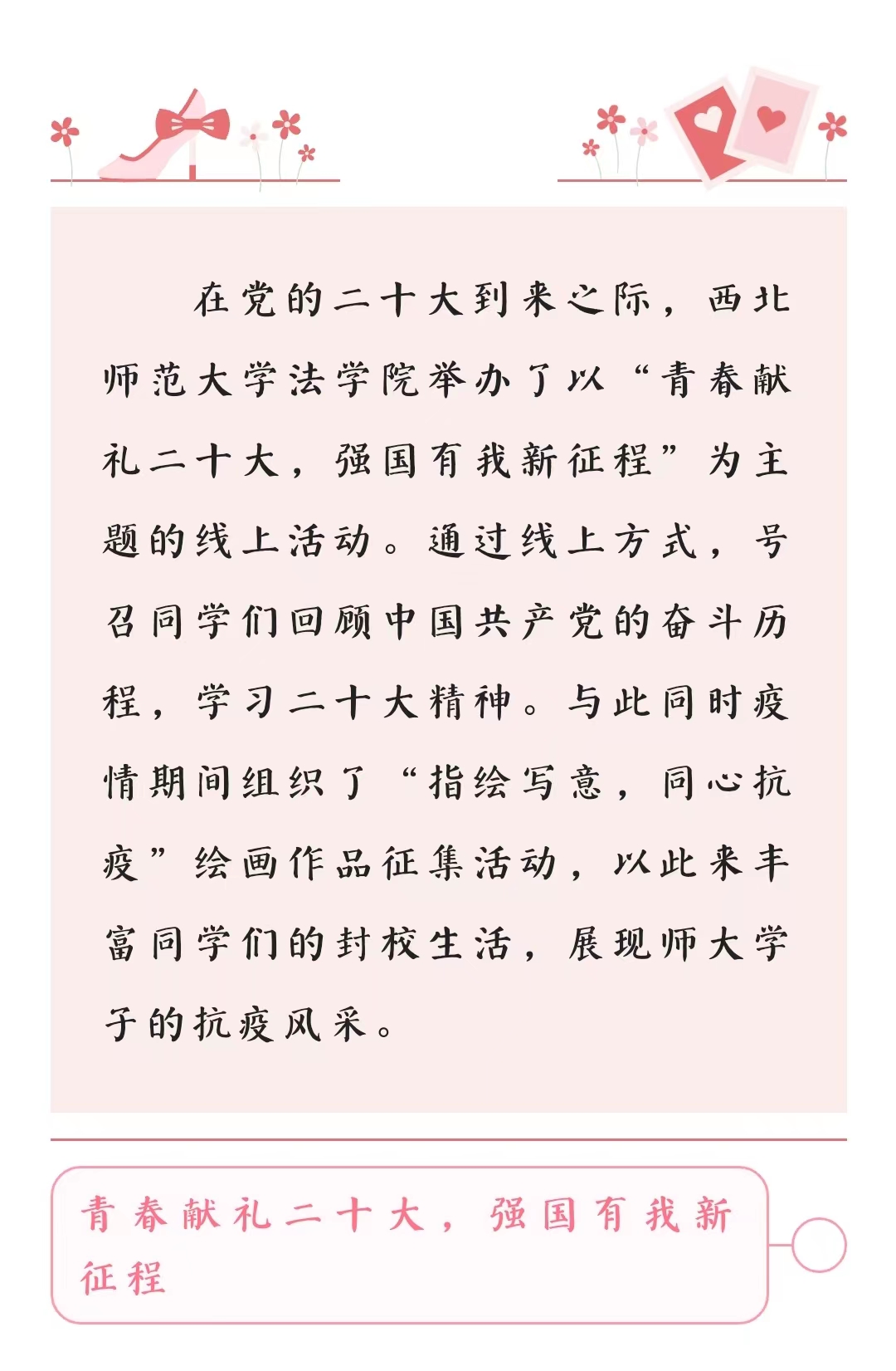 “爱人者,人恒爱之。”疫情防控工作的顺利开展从来不是管理者的单方付出、也不是一条条文字书写的规定,而是校方与同学们相互配合、相互支持的带有温度的行动的实施,文字有温度、行动亦有温度,我们相信,在学校、老师和同学们的彼此守望相助下,疫情终将退散,抗疫必胜。