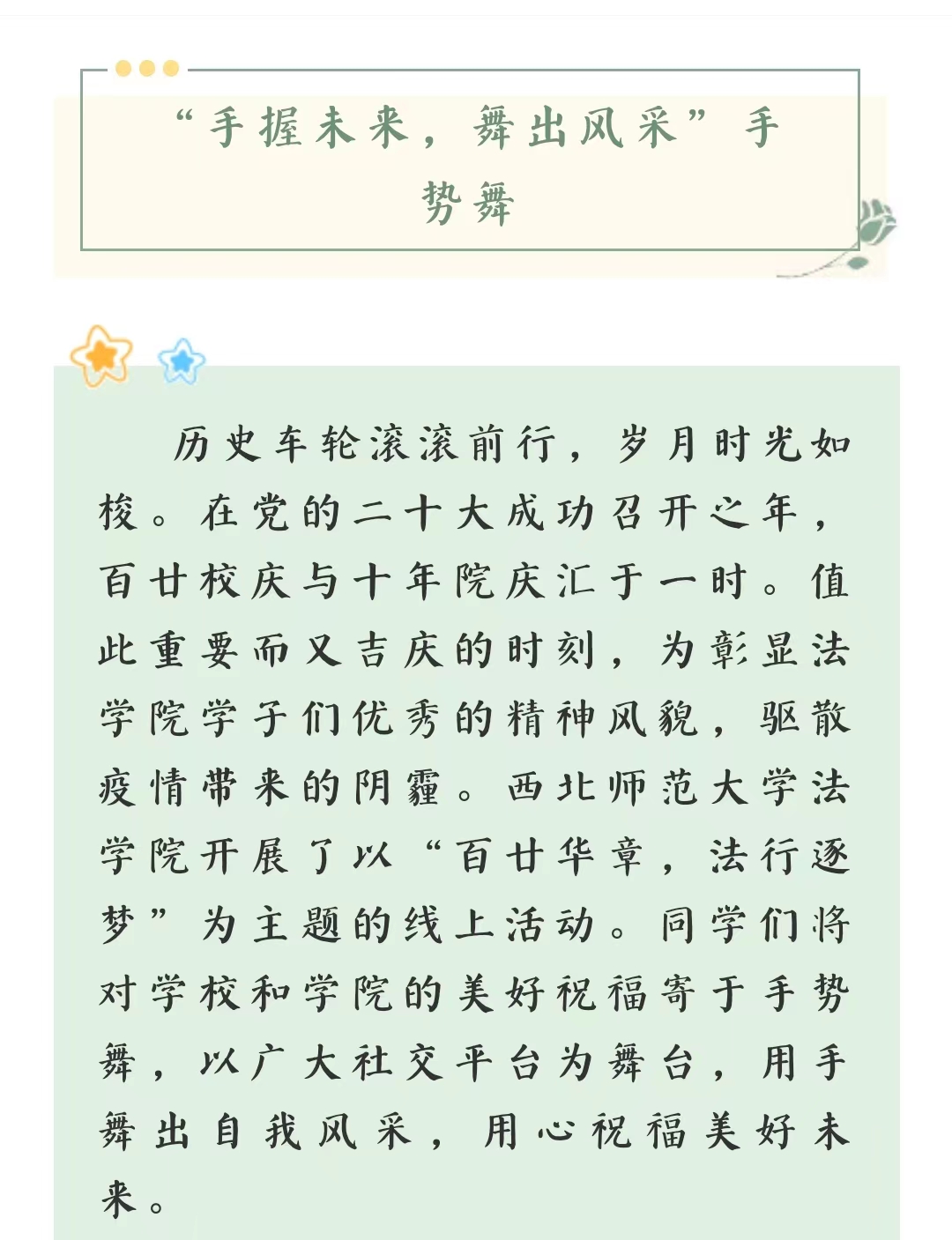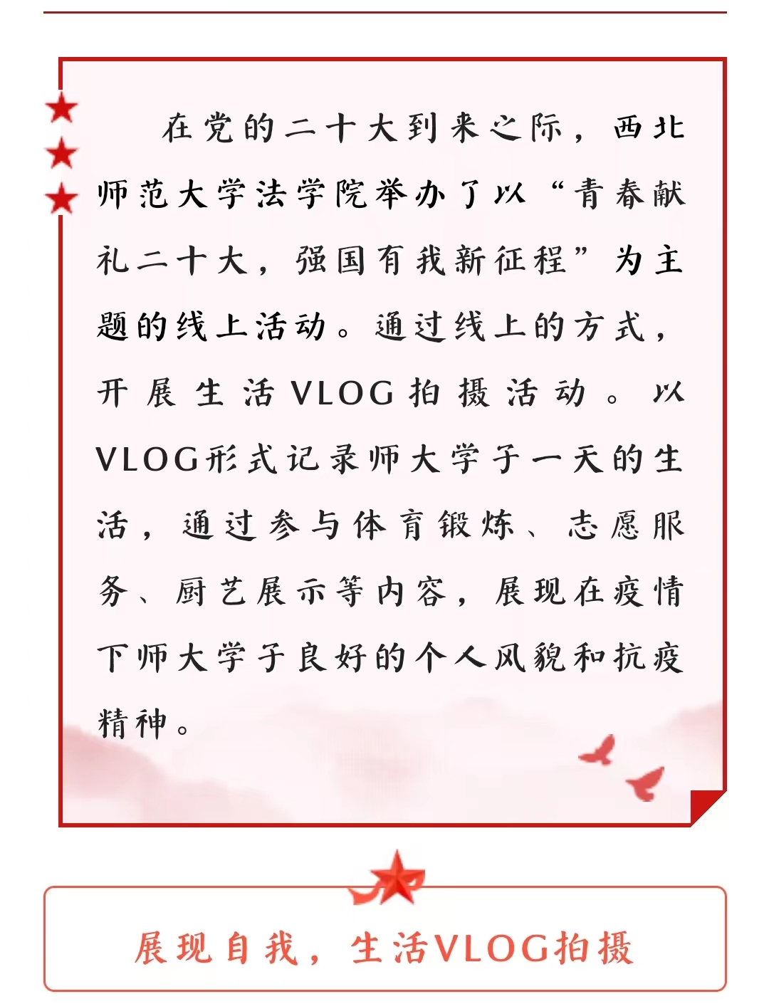 两个多月来,学院党委认真落实学校党委有关疫情防控的各项规定,每一名师生都是重要的防控点,每一个班级和支部都是最前沿的堡垒,大家齐心协力守护着疫情防控的基层防线。一方面,学校安排校院两级领导、管理干部和专任教师组成疫情防控专班入驻各个校区,学院党委书记李发军同志、党委副书记王金元同志及张国文、张永祯、白洁、王婷婷等老师分别进驻专班开展工作,24小时守护同学们的健康和安全;学校餐厅克服种种困难提升饭菜质量,确保每一位同学都能吃上品种丰富、味道可口的饭菜;学校心理中心开通24小时心理咨询服务,为同学们提供了一个解决焦虑、安全倾诉的环境,有效缓解了部分同学的焦虑与不安。另一方面,学院也详细部署了学院疫情防控各项工作,班主任、导师牵头召开了以“学会在逆境中成长”为主题的班会、组会;班级心理委员有担当、负责任,细致耐心配合学校做好班级同学的心理疏导工作;本科生学生会、研究生会以百廿校庆为契机,组织各类学术报告10余场,丰富和拓宽了同学们的学习广度和深度,并相继开展了线上朗诵、生活vlog记录、抗疫手绘等诸多线上比赛,为各班分发体育用品,丰富了同学们的课余和疫情防控期间的生活。