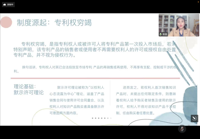 谢老师主要从数字环境下著作权默示许可制度的基本概述、域外考察、现状检视以及应然安排四个方面展开论述。第一部分,谢老师介绍了著作权默示许可的基本概念;总结了民法领域的默示行为、合同法领域的默示条款、知识产权法领域的默示许可以及著作权法中的默示许可在数字环境下对合同关系的超越,并以此来阐述著作权默示许可制度的发展和演变;还对知识产权法领域的默示许可制度分别从制度源起(专利权穷竭)、显性制度(发行权一次用尽)以及隐形制度(作为合同条款的补充)作了进一步解释。谢老师从当前困境和现实需求两个角度出发,概括分析了数字环境下著作权默示许可制度面临的新形势。在第二部分,谢老师总结提炼了英美法系和大陆法系关于著作权默示许可制度的发展演进,并以Field与Google案、Google图书馆案两个典型案例论述了美国数字环境下著作权默示许可制度的初次实践和再次探索。第三部分中谢老师详细介绍了我国著作权默示许可制度的立法现状、司法实践以及制度建设在宏观、中观、微观层面的不足。第四部分,谢老师提出数字环境下我国著作权默示许可制度的应然安排,即明确数字环境下著作权默示许可制度的构成要件、界定数字环境下著作权默示许可制度的具体范围以及构建数字环境下著作权默示许可制度的配套措施。