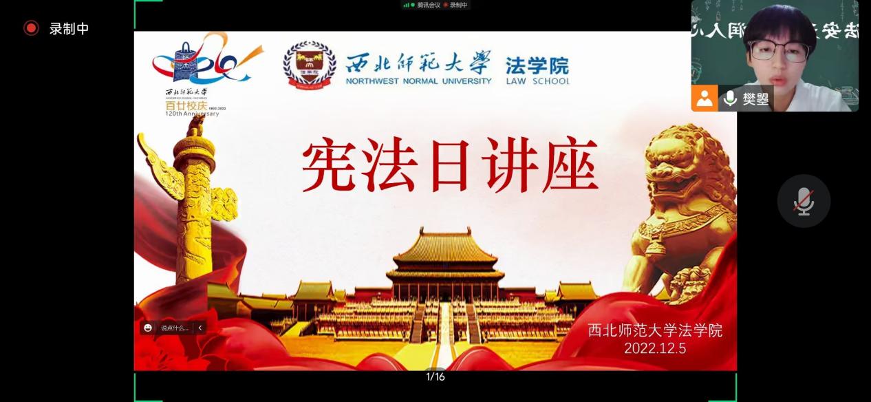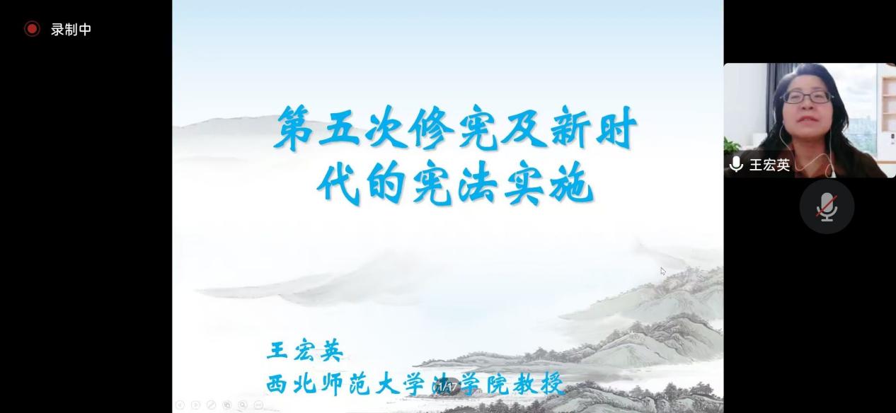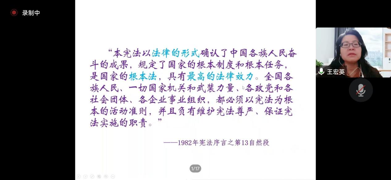弘扬宪法精神,加强宪法实施。为进一步提高全体同学的法律意识,引导学生深入了解宪法,尊崇宪法精神。12月5日晚7点30分,学院举办了以“学宪法,讲宪法”为主题的线上专题讲座。本次讲座邀请必赢线路检测3003no1教授、硕士生导师王宏英担任主讲人。本次专题讲座面向全校师生,同学们积极参与,学习法治思想,弘扬宪法精神。