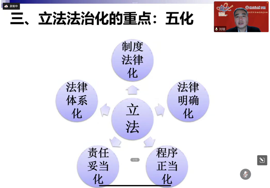 受疫情影响各地出现了一些社会问题,而社会问题的出现与我国立法工作的不足具有关联性,我们应该抓住立法重点问题,坚持科学、民主、依法立法,早日实现国家立法法治化的良法目标。本次讲座使同学们更深入地了解了立法法治化的概念及相关问题,给予同学们以思想上的启迪,激发了同学们学习相关理论知识的兴趣。
