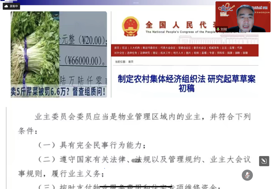 本次学术报告刘老师围绕着立法法治化主题,从立法法治化的成效与不足、立法法治化的目标以及立法法治化的重点三个角度展开论述。首先刘老师以“卖5斤芹菜被罚6.6万”的案例破题,指出我国现实生活中存在的立法问题,引出“何为法治”的论题,通过与域外国家立法工作对比阐述我国目前立法法治化的成效与不足;其次刘老师对如何实现良法目标进行论述,指出立法工作要贯彻落实科学立法、民主立法和依法立法;最后刘老师介绍了立法法治化的五个重点问题,即制度的法律化、法律的明确化、程序的正当化、责任的妥当化以及法律的体系化。