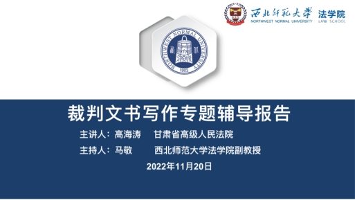 为提高我院学生的写作能力,提升学生的专业素养,拓展学生的实务技能,2022年11月20日我院邀请甘肃省高级人民法院高海涛法官作《裁判文书写作》专题辅导报告。本次活动由马敬副教授主持,我院研究生在线聆听。