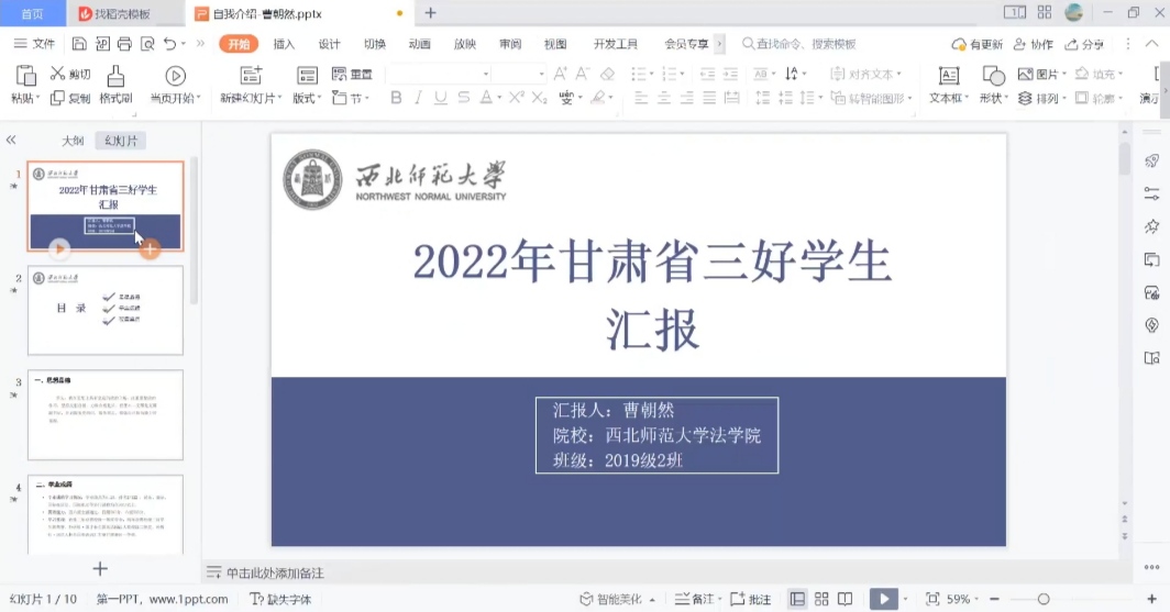 经过激烈的角逐,2019级法学2班孙袁缘、2019级法学2班曹朝然和2021级法学1班蔡家琦3位同学获得甘肃省高校三好学生的推荐资格。本次答辩会展现了我院学子的优秀风采,展现了他们蓬勃向上的激情,他们笃志前行,奋斗不止的精神同时激励着同学们以他们为标杆,努力拼搏,以梦为马,不负青春,不负韶华!