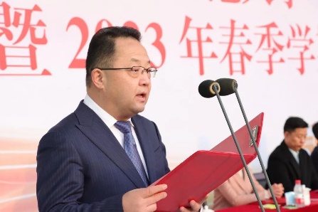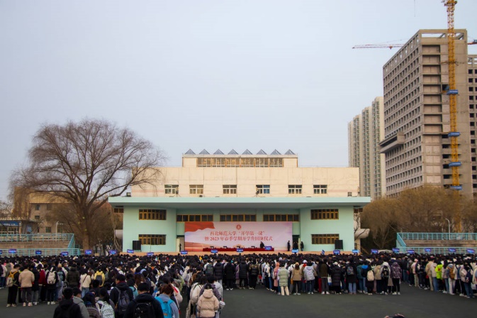 3月1日上午,学校举行“开学第一课”暨2023年春季学期开学升国旗仪式,四千余名师生相聚国旗下,同上一堂课,共同迎接新学期,学院党委副书记王金元老师、专职辅导员白洁老师带领2022级全体新生参加了此次活动。党委书记贾宁出席并讲话。贾书记勉励新生,“志存高远方能登高望远,胸怀天下才可大展宏图”,让我们师生一体,团结一道,在习近平新时代中国特色社会主义思想指引下,为百廿师大再铸辉煌,为全面建设社会主义现代化国家再谱新篇!同时学生代表集体诵读《请党放心 强国有我》、台上台下同声齐唱校歌《我的校园在黄河岸上》。