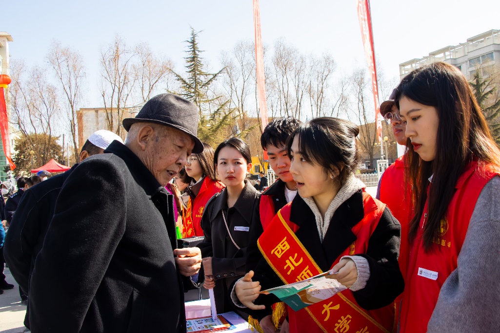 3月5日上午6:30,学院专职辅导员白洁老师带领“律法新声”实践团赴临夏市开展法律援助志愿服务活动。在红园广场上,实践团有序开展普法宣讲活动,队员们发放以弘扬雷锋精神为主题,印有民法典漫画、大学毕业生就业创业法律问题等内容的宣传彩页,通过创新普法形式增强了当地群众参与的积极性。