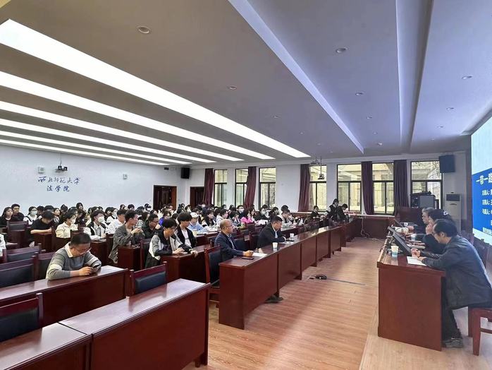 在黄教授的报告结束之后,与谈嘉宾牛绿花教授、田庆锋教授分别发表了自己的观点。牛绿花教授对黄教授所作学术报告高度赞扬,牛教授就共生互补的视角:河西走廊的“卯榫”结构这一问题与黄教授进行了深入交流。田庆锋教授对黄教授学术报告的特点进行了以下五点总结,即报告的内容、视角广阔,包含了中亚史、蒙古史、民族学、语言学等;引入了新的学术概念,比如绿洲桥,河西走廊的意义等;对世界史的回顾很系统;报告在研究方法上给予听众启示;从河西走廊历史地位中得出要树立文化自信的启示。其次,田教授就地方立法研究的思考中要突出甘肃特色;法学研究如何向历史研究学习;历史研究对法学研究的启示有何宪法意义;从历史研究出发,法律与文化的体系如何建构这四个问题发表了自己的看法。在同学提问环节,同学们就世界会分裂为小国还是会合并为一体以及是否可以把游牧文化写入历史教材等问题与黄教授进行了交流。