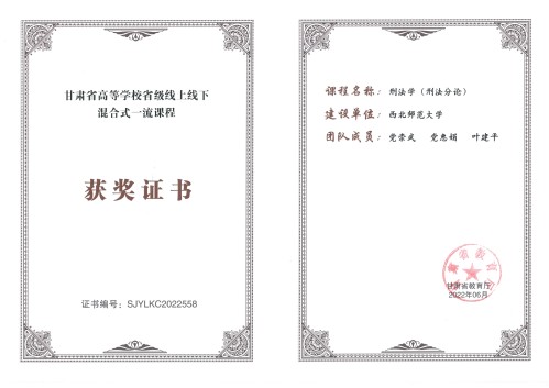 甘肃省省级线上线下混合式一流课程 | 刑法学 | 2022 | 省级 | 甘肃省教育厅 |