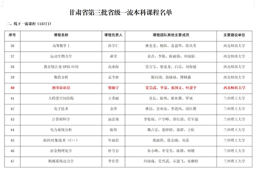 甘肃省省级线下一流课程 | 刑事诉讼法 | 2023 | 省级 | 甘肃省教育厅 |