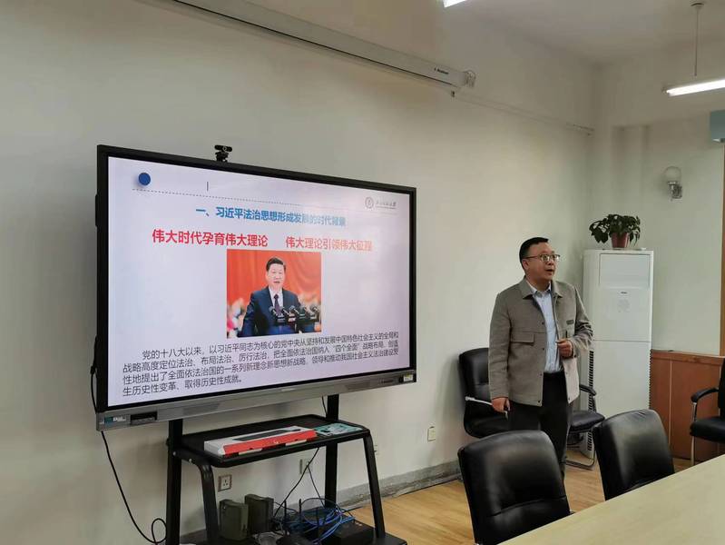 4月26日,党委委员、系主任马敬做了《习近平法治思想》专题辅导。马敬同志从习近平法治思想的历史逻辑、时代逻辑、理论逻辑、实践逻辑方面全面系统的解读了习近平法治思想的重要内容和深刻含义。他表示习近平法治思想,是在全面总结我国法治实践经验的基础上深入回应法治建设实践难题而形成的重大理论创新成果,是解决我国法治领域突出问题的迫切需要,反映了法治建设实践逻辑的必然趋势,必然会指导学院学科建设、人才培养等重要工作取得实效。读书班就贯彻落实习近平法治思想,推进卓越法治人才培养进行研讨。