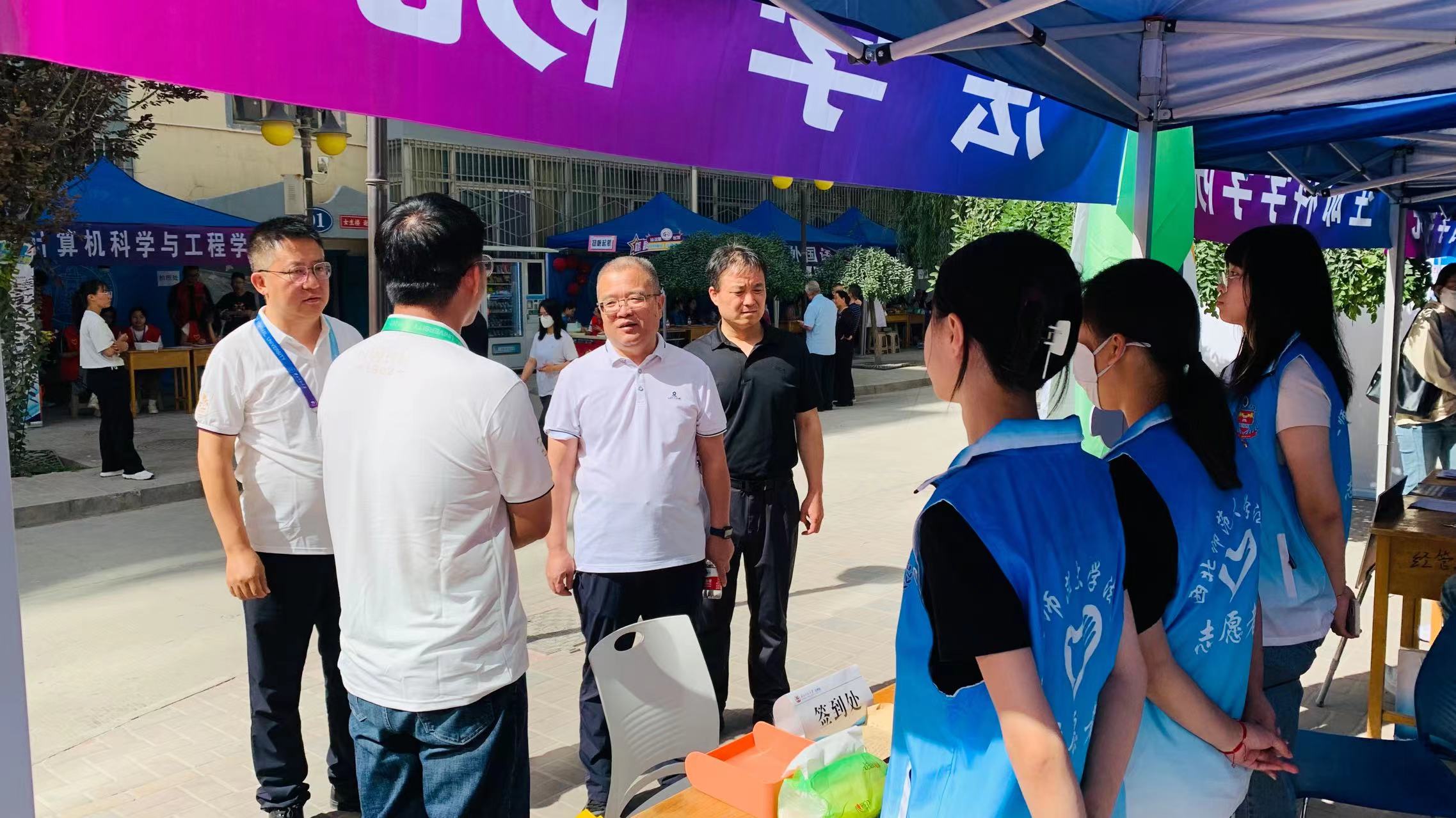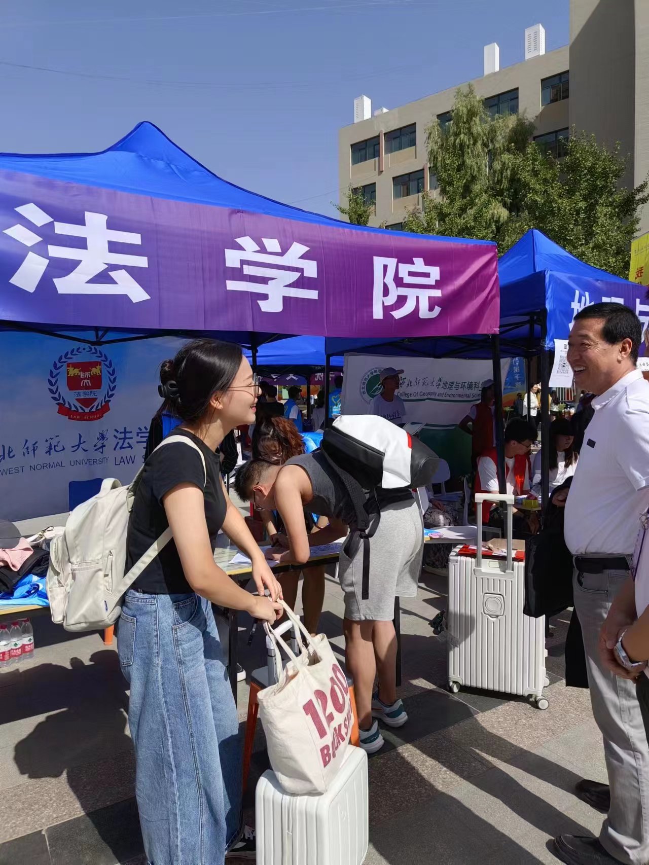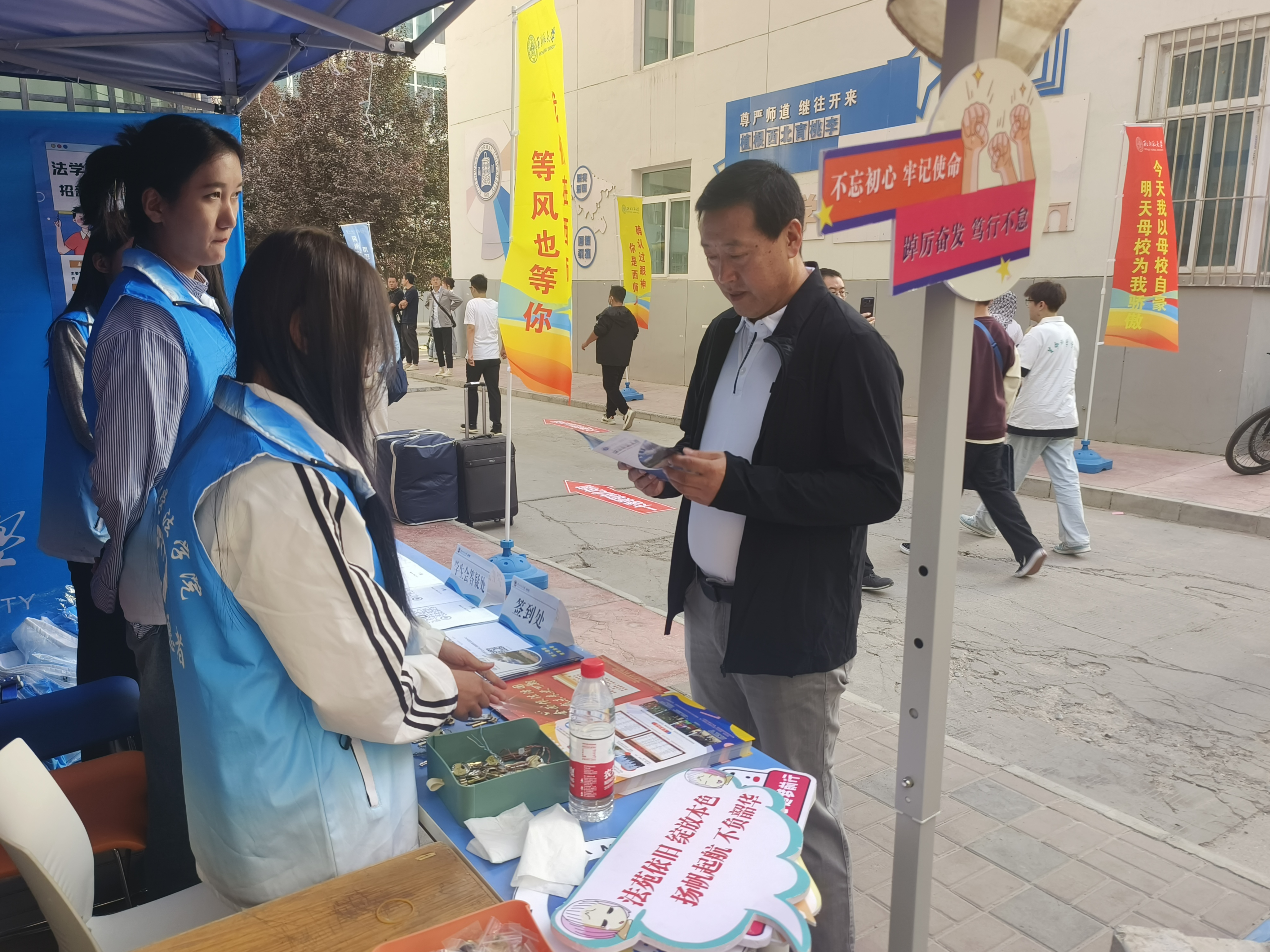 9月2日,兰天学生公寓内彩旗飘扬、人头攒动,每一个人的脸上都洋溢着开心的笑容。全体迎新工作人员通力合作,有序协助新生完成报到工作。迎新展板、宣传手册、海报、视频展播等细节,都在告诉每一位新生“西北师范大学欢迎你”。学院领导、新生班主任、辅导员轮流值班,与学生及家长亲切交谈,了解情况,给新生送上暖心问候,诚挚地感谢家长对学校、学院的信任和肯定。