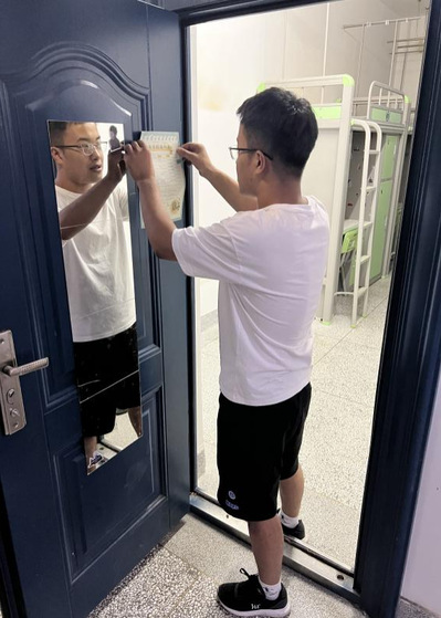 8月31日,全体辅导员老师和学生干部、志愿者开展了新生宿舍检查及美化工作。师生们逐一核查、查漏补缺,着重查看新生宿舍的门窗、桌椅、床铺、水电等设施情况,并对有安全隐患的设施做好详细统计,反馈相关职能部门及时协调解决。同时,对新生宿舍进行美化布置,张贴通讯录、门贴、摆放绿植,努力为新生打造一个舒适宜居的住宿环境。