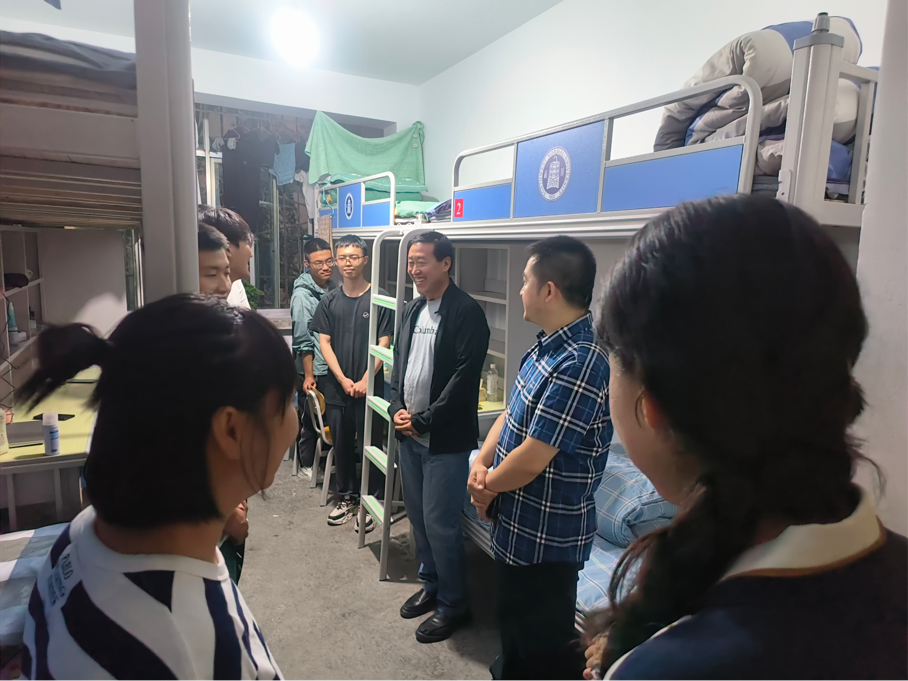 9月3日晚,学院党委书记李发军、何俊毅院长,党委副书记王金元、马敬副院长及各班班主任、导师及学生干部一起走进学生宿舍看望新生。老师与同学们亲切交流,深入了解新生情况,帮助新生尽快适应新生活、新环境;询问老生假期生活、学习及生活情况,提醒同学们学好专业知识、合理安排时间、提前做好就业规划、提升自身价值。