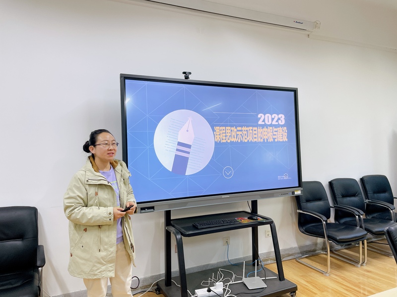 随后,蔡芳老师以《国际经济法》课程思政示范课程为例,与全体教师就项目申报、立项建设、结项答辩等环节作分享交流,并重点讨论了如何在专业课程建设中构建教学团队融入课程思政元素、借鉴有特色的实践成果等。
