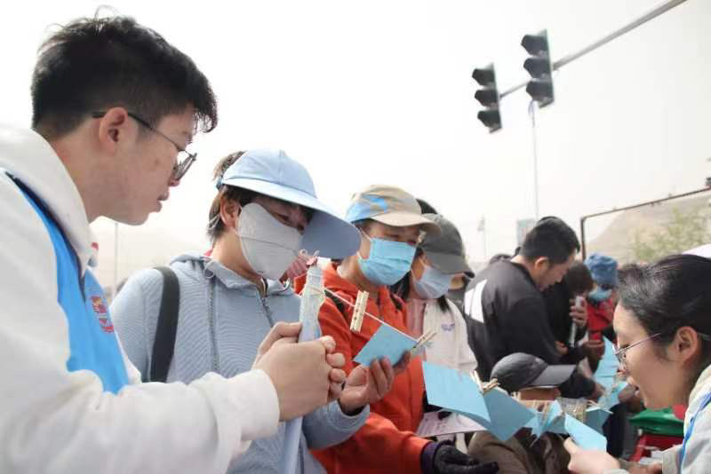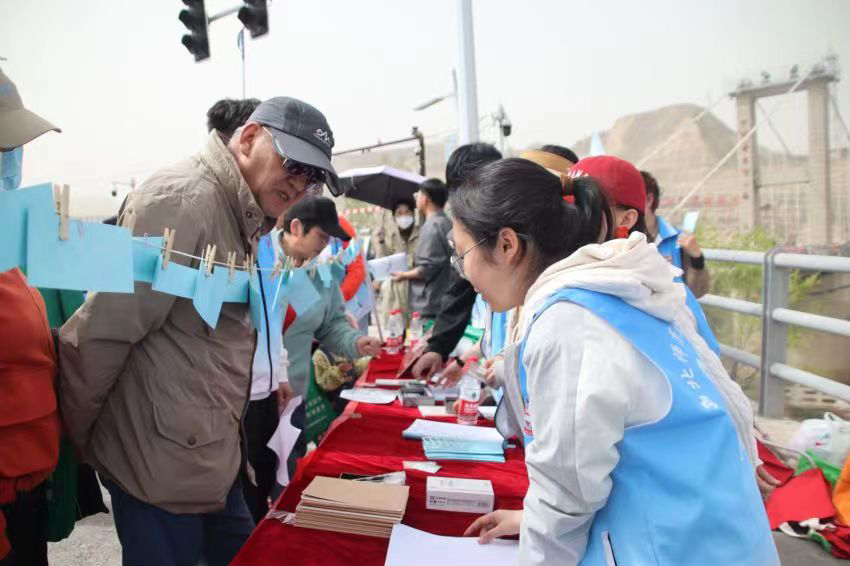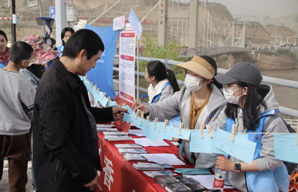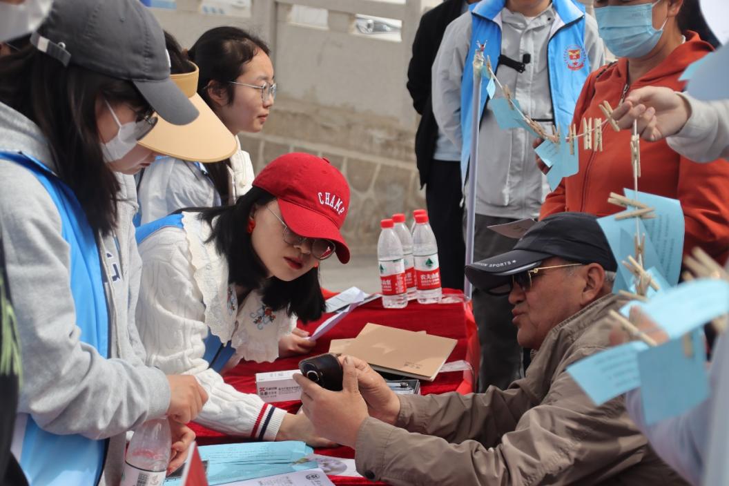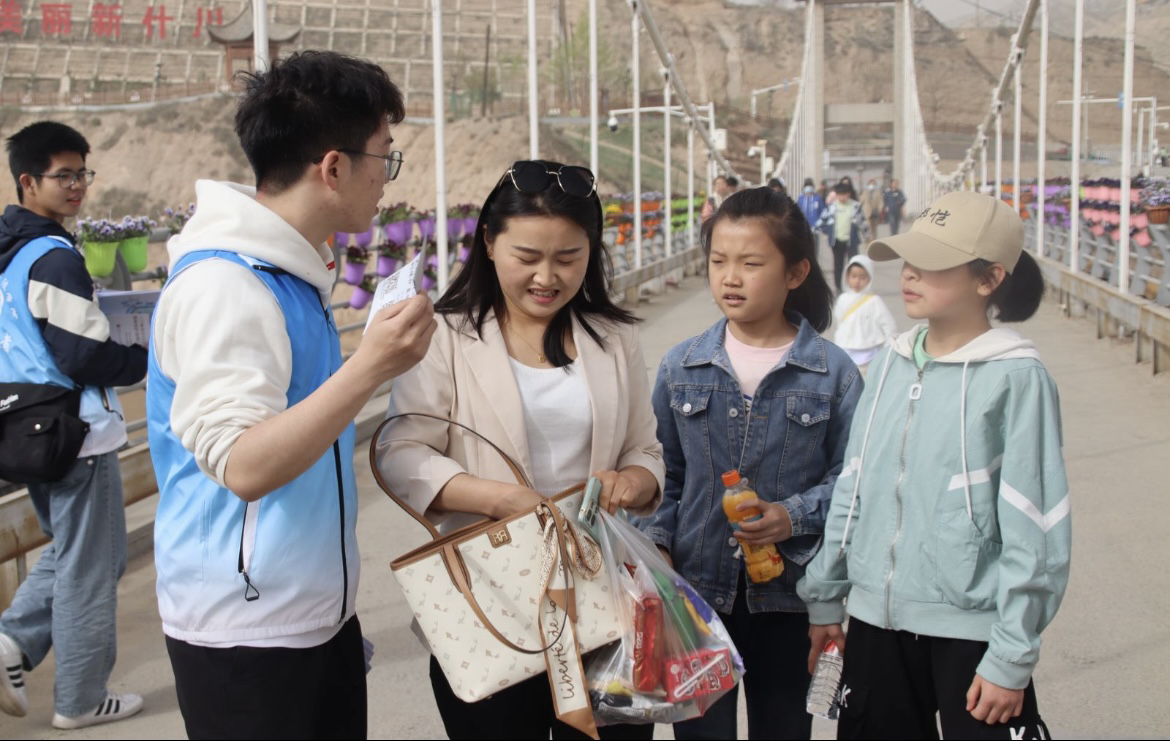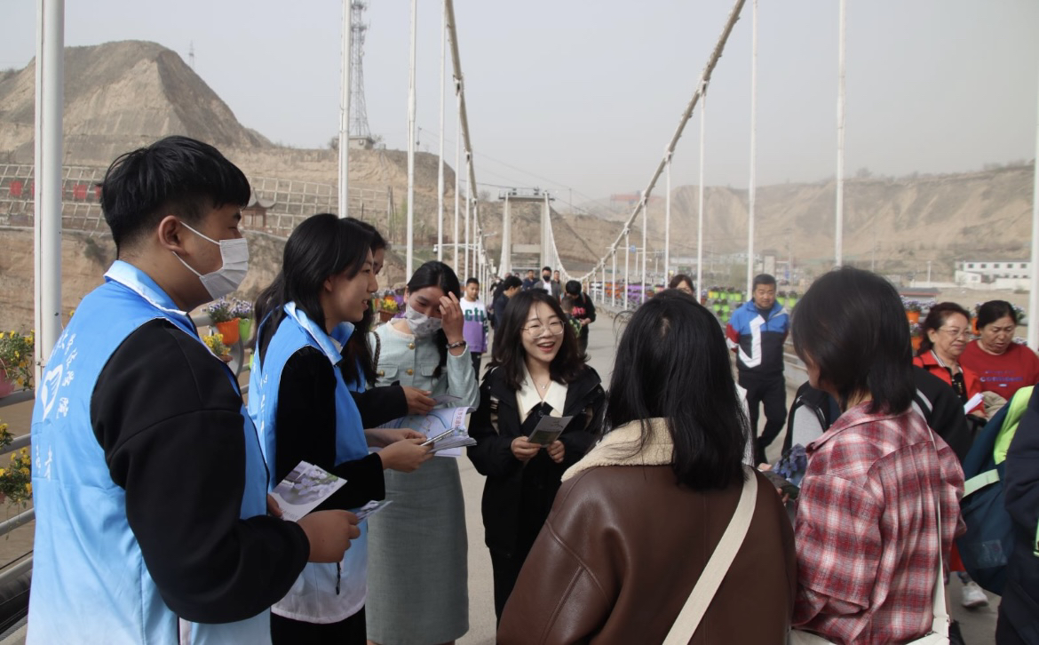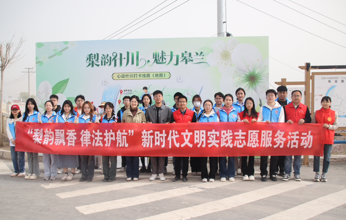 在景区入口,实践团的成员们还通过设立法治宣传服务点的方式,以各式各样的宣传标语吸引群众目光,通过有奖竞猜、趣味问答等活动普及梨园保护的相关规定和古梨树保护的多种方法,寓教于乐,让群众在玩中学、学中悟。现场群众热情高涨、积极参与,在盛放的梨花下形成了别样的美景。