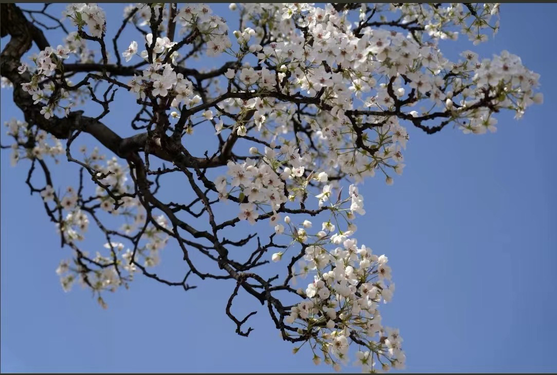 “白锦无纹香烂漫,玉树琼葩堆雪”。恰是人间三月天,九曲黄河奔腾向东、轻抚陇原,在黄土梁峁下引出一片穿浓荫如墨、灿白若雪的万亩古梨园。9423株百岁古梨竞相争艳,3000户人家比邻而居,千百年来、生生不息,描绘着一幅人与自然相依相存、和谐共生的温馨画卷。