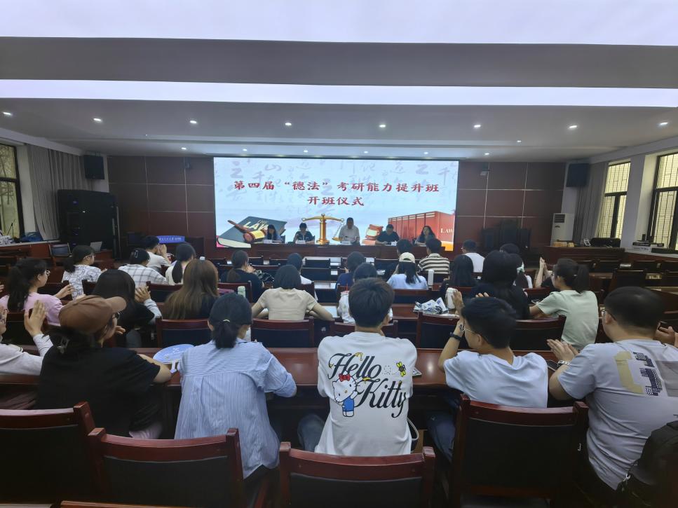523日,学院第四届“德法”考研能力提升班在模拟法庭举行开班仪式,学院院长何俊毅、副院长马敬、第四届“德法”班班主任李娟、团委书记白洁出席开班仪式,党委副书记雷春芳主持会议