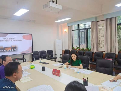 王菲老师以《论健康环境权作为人权的依据》为题,对论文选题、写作思路、基本框架作了详细汇报。她从健康环境权作为人权的规范依据、法理依据、实践依据三个角度着手,论证了健康环境权作为人权的正当性、必要性、可行性,并提出在我国确立健康环境权的基本路径。