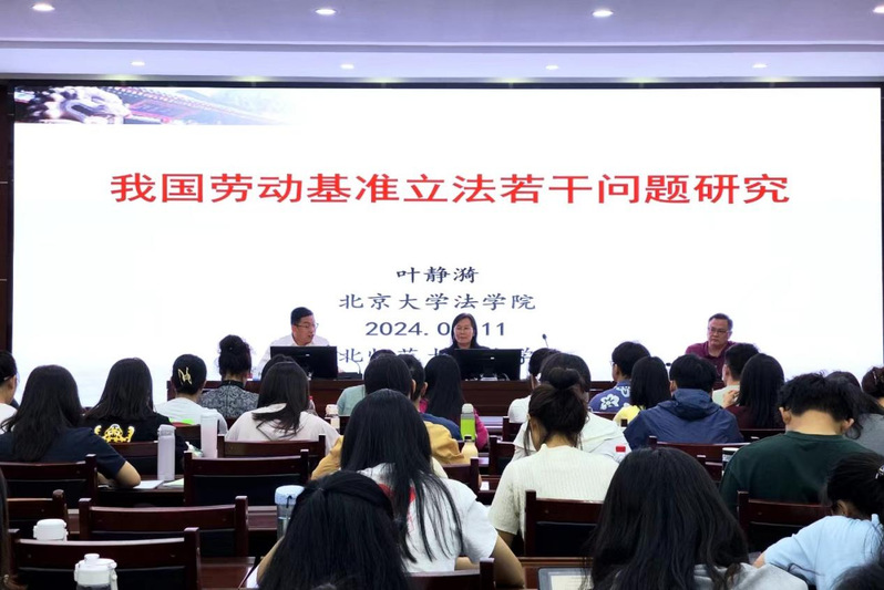 2024 年 6 月 11 日,必赢线路检测3003no1教授、博士生导师、北京大学校务委员会副主任叶静漪作《我国劳动基准立法若干问题研究》专题学术报告。学校党委副书记王全进出席报告会,报告会学院院长何俊毅主持。