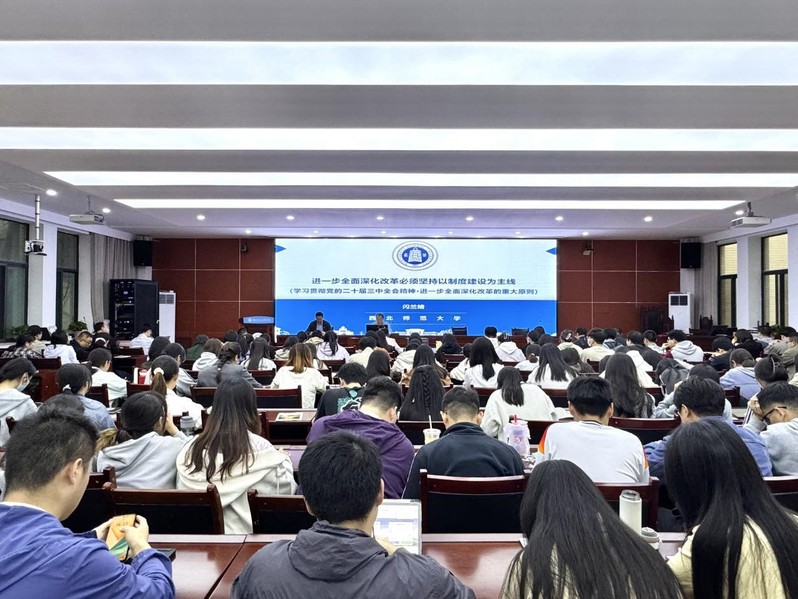 报告以“进一步全面深化改革必须坚持以制度建设为主线”为主题,旨在学习贯彻党的二十届三中全会精神,深刻理解把握进一步全面深化改革的重大原则。报告中,闪兰靖教授从以“中国之制”推进“中国之治”、进一步全面深化改革的内在要求、为中国式现代化提供制度保障、制度的生命力在于尊重、在于执行、在于维护、以党的自我革命引领伟大社会革命、用钉钉子精神抓好改革落实等五个方面对党的二十届三中全会精神进行了解读。他指出,中国特色社会主义制度具有独特创造性、巨大优越性,在持续完善发展中与时俱进。应当坚持以制度建设为主线,进一步明确全面深化改革总目标。制度建设是由改革进入攻坚期和深水区的艰巨任务所决定的。因此,既要坚定制度自信,又要积极推进制度创新,强化制度意识,维护制度尊严,严格落实各项制度要求,以党的自我革命引领伟大社会革命,为中国式现代化提供制度保障。