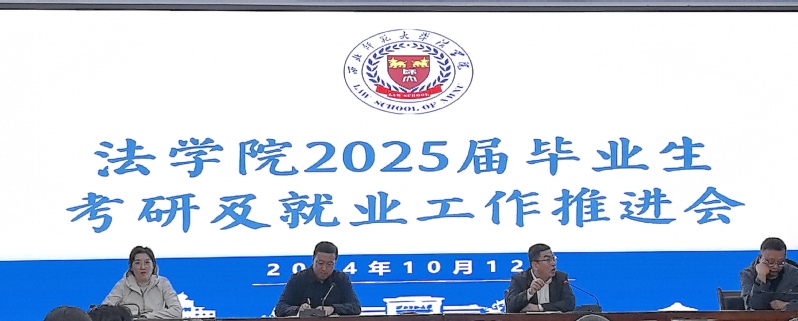 2024年10月12日晚,学院在模拟法庭召开2025届毕业生考研及就业工作推进会。学院全体班子成员、毕业班班主任、德法班班主任、辅导员及2025届本科毕业生共130余人参加会议。会议由学院党委书记李发军主持。