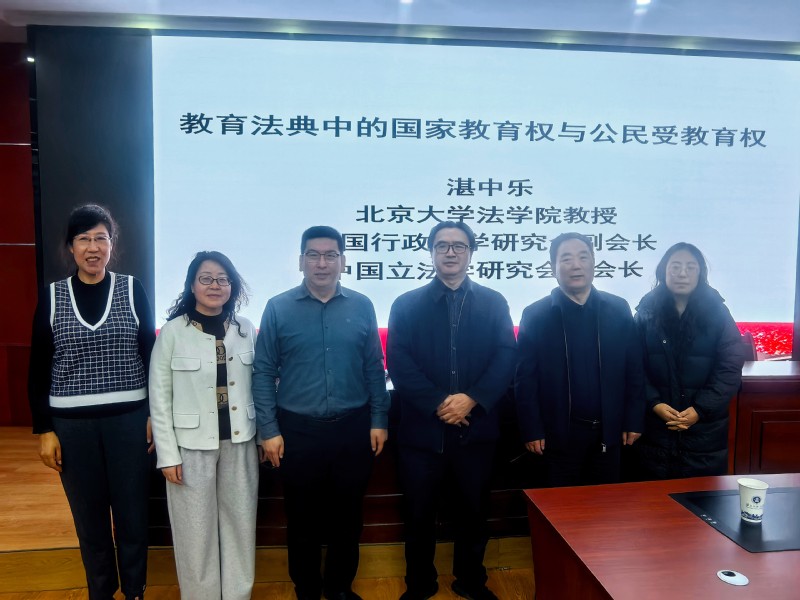 20241216日,必赢线路检测3003no1湛中乐教授应邀为我院师生作题为《教育法典中国家教育权与公民受教育权》的专题学术讲座。讲座在西北师范大学云亭校区致公楼D区模拟法庭举行,学院院长何俊毅主持,杜睿哲教授、王宏英教授、牛绿花教授、李娟博士、王菲博士等参会与谈。