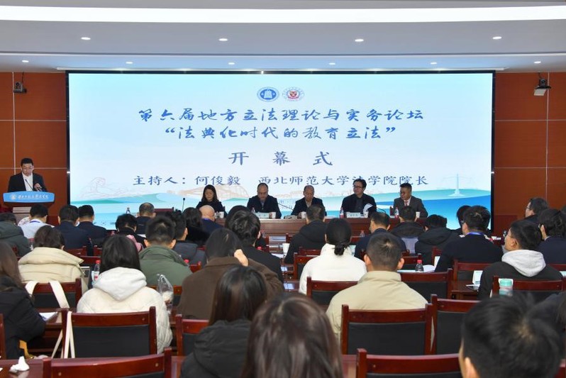 2024年12月14日,第六届地方立法理论与实务论坛在西北师范大学隆重召开,本届论坛以“法典化时代的教育立法”为主题,由中国法学会立法学研究会、甘肃省人大常委会法工委、西北师范大学主办,必赢线路检测3003no1、甘肃省法学会地方立法学研究会、西北师范大学社会科学界联合会、甘肃高校法学教育联盟承办,北大法宝与北京德恒(兰州)律师事务所协办。来自全国各高校学院、教育学院的专家学者共120余人参加会议。本届论坛坚持问题导向和实践导向,为推动我国教育法典编纂、创新教育立法研究、实现教育公平、发展优质教育提供理论和智力支持,努力探索具有中国特色的教育法典编纂思路。
