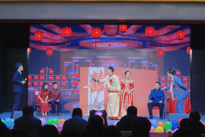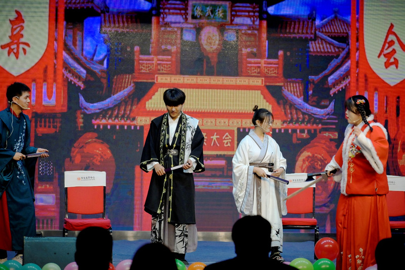 在晚会的中间部分,主持人组织了观众互动环节,观众根据大屏幕上的关键词猜出谜底,答对者可获得精美的小奖品。在一轮一轮的游戏中,同学们踊跃举手回答,不仅让同学们收获了精美的礼物,也让同学们重温了中华传统文化的魅力。