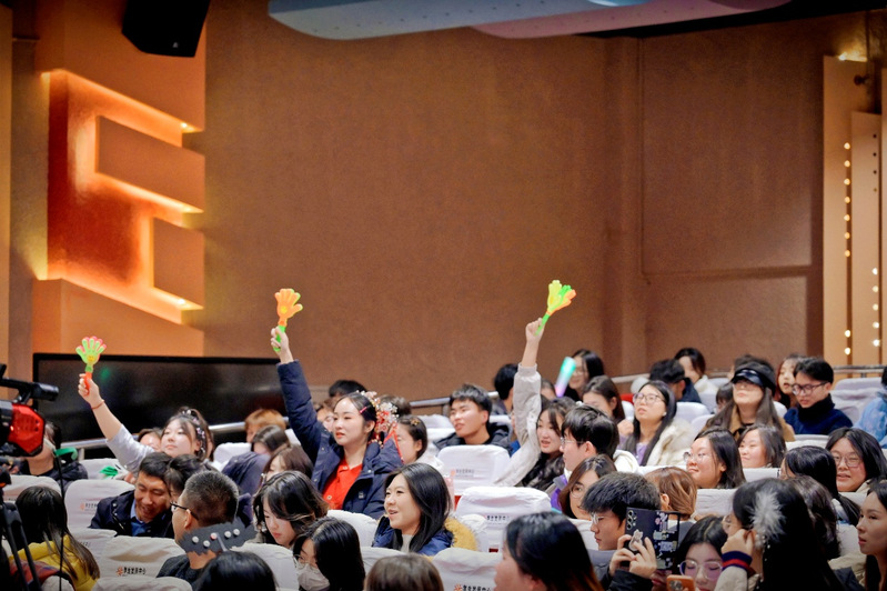 在晚会的中间部分,主持人组织了观众互动环节,观众根据大屏幕上的关键词猜出谜底,答对者可获得精美的小奖品。在一轮一轮的游戏中,同学们踊跃举手回答,不仅让同学们收获了精美的礼物,也让同学们重温了中华传统文化的魅力。