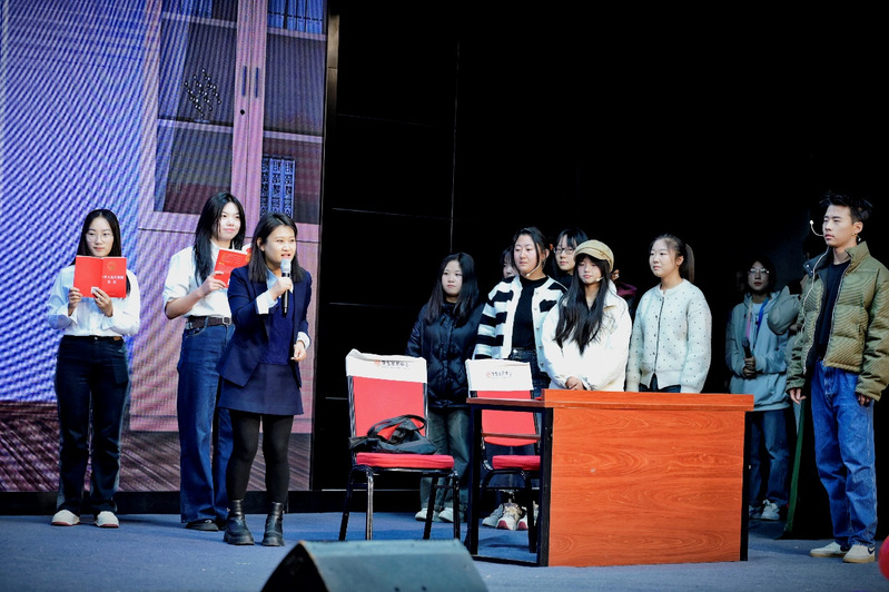 为进一步推进学院文艺活动的蓬勃发展,丰富同学们的校园文化生活,有效促进学生德智体美劳全面发展,2024年12月12日晚,学院第九届法韵晚会暨“弦歌启征程,奋进谱新篇”师生思政大课堂在学生发展中心精彩上演。学院党委书记李发军,学院院长、党委副书记何俊毅,党委副书记雷春芳,副院长党崇武、罗杰和学院部分师生观看了此次晚会。晚会节目类型多样、生动有趣,本次晚会不仅是一场艺术与法治的盛宴,更是一次心灵的洗礼和梦想的启航。